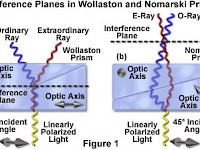 探索和渥拉斯頓諾馬斯基棱鏡 如何充當分光器分離或剪切的光的偏振光束分成穿過兩個相干和正交分量,并與在微分干涉對比(DIC)顯微鏡檢體的略微不同的區(qū)域進行交互。?這個交互式指南檢查干涉平面在兩個棱鏡的類型的位置,以及如何面的位置可以與在一單個棱鏡楔形改變光軸方向變化之間的差異。