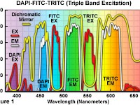 紫外線和尼康DAPI-FITC-TRITC濾波器組合可見光透射光譜曲線下面示于圖1.該濾波器集合時在施加設計的DAPI,FITC(異硫氰酸熒光素),和TRITC(四甲基異硫氰酸酯)探針的Zui佳檢測組合,并采用一個激發(fā)濾光器與窄帶通窗中的紫外線(385至400納米),藍色(475?490納米),綠(545至565納米)的頻譜區(qū)。