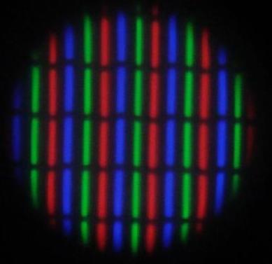 下面是ip4的屏幕顯微,排列方式是rgb,由于點(diǎn)距?。ㄋ追Q視網(wǎng)膜)所以看起來非常精細(xì),目前基本所有的液晶顯示器都是這樣的排列方式。早期的數(shù)碼相機(jī)液晶顯示是采用rgb拉伸并交錯(cuò)的像素結(jié)構(gòu)(即整個(gè)像素并非正方形)。