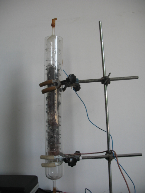 看看我自己做的除氧裝置,,雙層石英管,,中間層是加熱絲,,Zui里邊的是銅絲,,