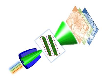 這張照片示意圖顯示研究各種光子能量的X射線照射二氧化鈦,通過(guò)毛細(xì)血管冷凝器棒。 – 這里沒(méi)有顯示 – 一個(gè)高分辨率的鏡頭,然后形成一個(gè)物體的形象。 (來(lái)源:HZB)