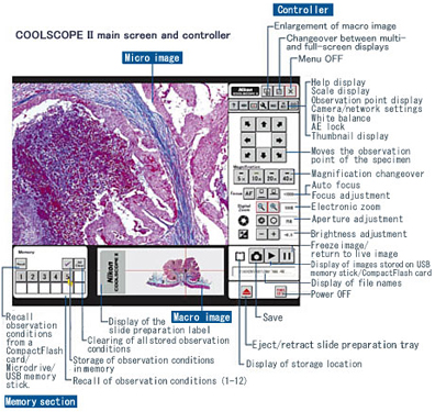 COOLSCOPE II將顯微鏡、數(shù)碼成像系統(tǒng)、網(wǎng)絡服務等功能完整的融合在一個緊湊的機箱中。采集到的所有數(shù)字圖像只需簡單的鼠標點擊即可通過網(wǎng)絡進行傳輸。當置入標本切片后,就可以通過顯示器瀏覽到明場圖像。對焦和亮度都可以自動進行調整。人機學控制器可以讓您如同操作一臺真實的顯微鏡一樣進行操作。