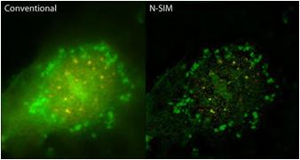 結(jié)合UCSF授權(quán)的“結(jié)構(gòu)化照明顯微術(shù)(S tructured I llumination M icroscopy)”與尼康聲譽(yù)卓著的CFI Apo TIRF 100x oil物鏡(N.A. 1.49)N-SIM幾乎實(shí)現(xiàn)了傳統(tǒng)光學(xué)顯微鏡兩倍的分辨率。