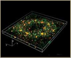 核體三維重構(gòu)圖(VEGF信號(hào)(Cy3)與泛素連接酶(FITC)共標(biāo),約5μm厚)